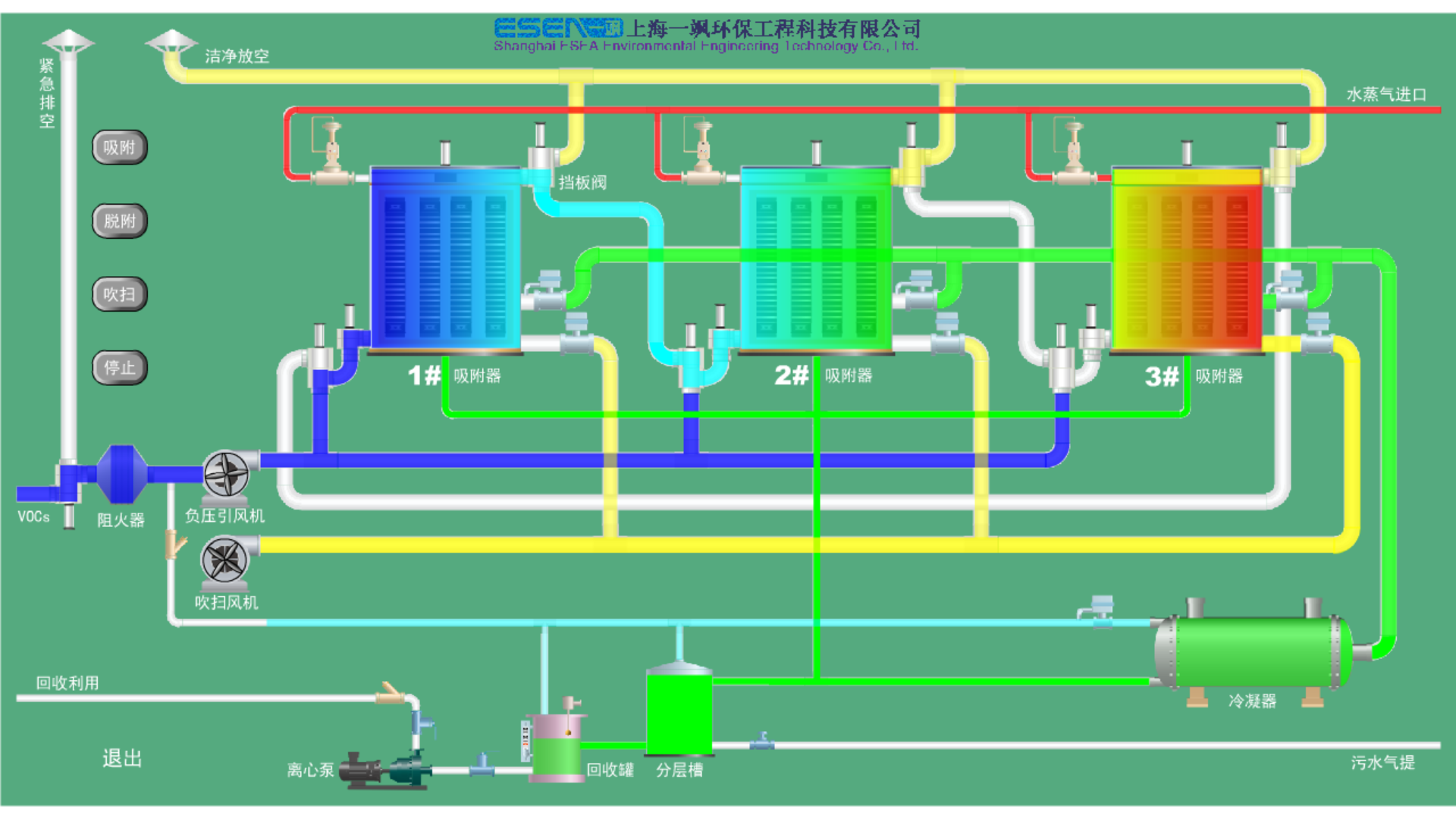 (6)安全環(huán)保:不但在設(shè)計(jì)時(shí)對(duì)溶劑的閃點(diǎn),風(fēng)管內(nèi)的風(fēng)速和不同溶劑的吸附放熱的速度等方面考慮,同時(shí)在被動(dòng)安全方面,使用了阻火器,避免設(shè)備的回火,在溫度控制上使用了遠(yuǎn)傳溫度檢測(cè)系統(tǒng),大大提高了設(shè)備整體的安全性和可靠性。